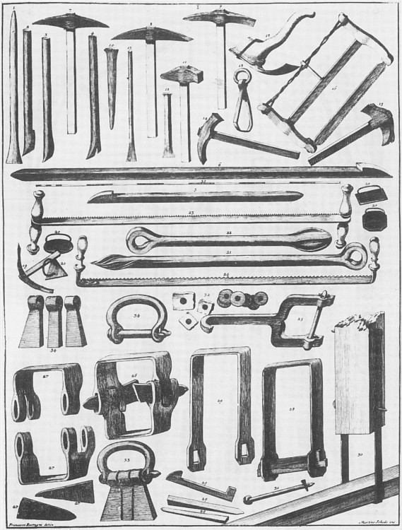 | didascalie / Bildlegenden / image descriptions | Ferramenti per la costruzione, da Castelli e ponti di maestro Niccola Zabaglia, Roma 1743, tav. I. |